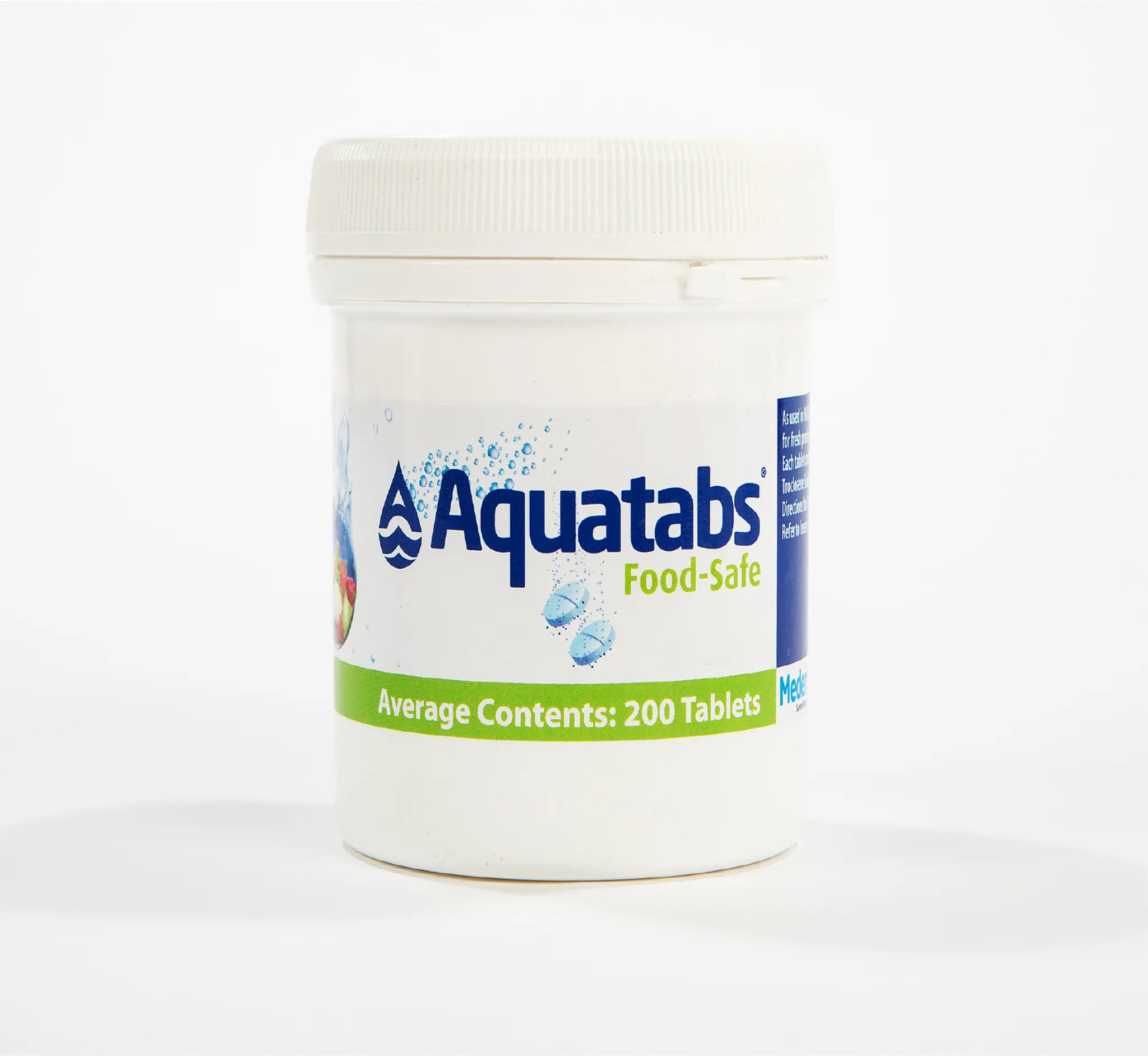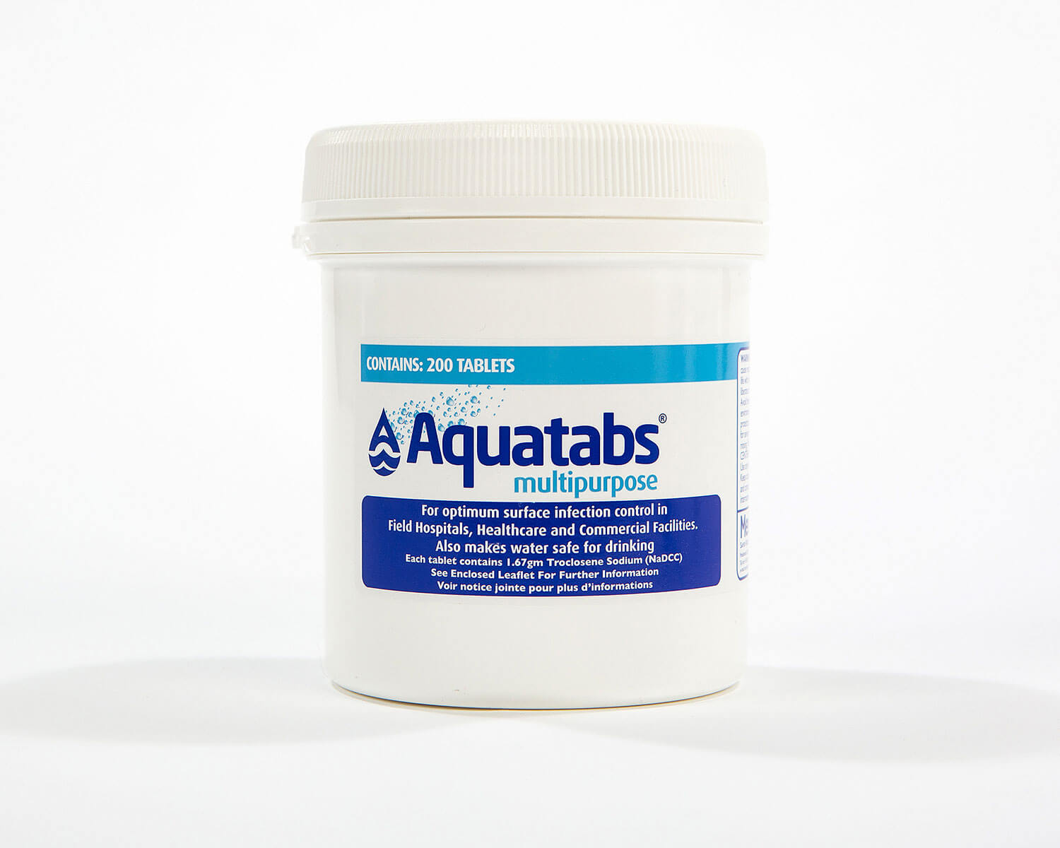Aquatabs® are the world’s most recognised and largest selling brand of water purification tablets. They are effervescent (self-dissolving) tablets, the US EPA approved active ingredient is NaDCC which is also known as Sodium Dichloroisocyanurate or Troclosene Sodium.